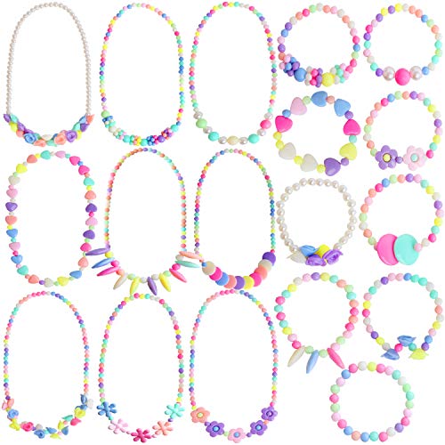 Outee 18 Pcs Toddler Costume Jewelry Princess Necklace Bracelet Set Kids Jewelry Kit Gift for Girls Dress Up Pretend Play Party Favors