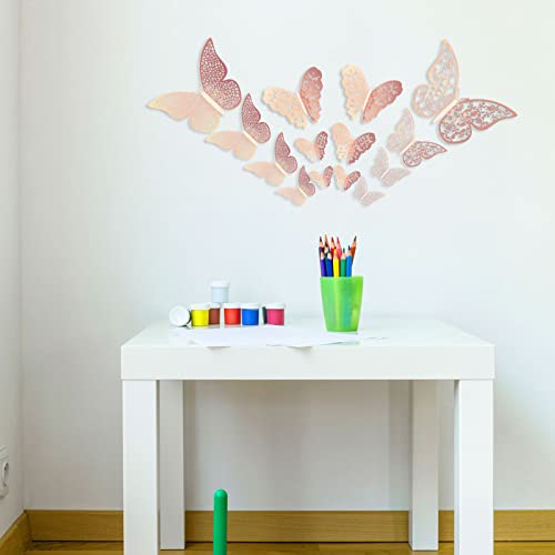 • Bememo 72 Pieces 3D Butterfly Wall Decals Sticker Wall Decal Decor Art Decorative Sticker 3 Sizes for Room Home Nursery Classroom Offices Kids Girl Boy Bedroom Bathroom Living Room Decor (Rose Gold)