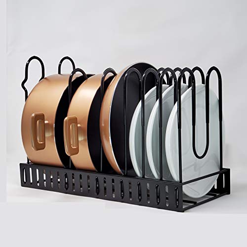 Last Minute Kitchen ECO-FRIENDLY Pot & Pan Organizer by LMK 3 DIY Method Adjustable 8+ Rack System for Pantry Cabinet & Countertop Black Heavy Duty Steel