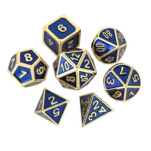 • Metal Dice Set Polyhedral DND Role Playing Game Dice Set with Storage Bag for RPG Dungeons and Dragons D&D Math Teaching Tabletop Games (Shiny Gold and Blue)