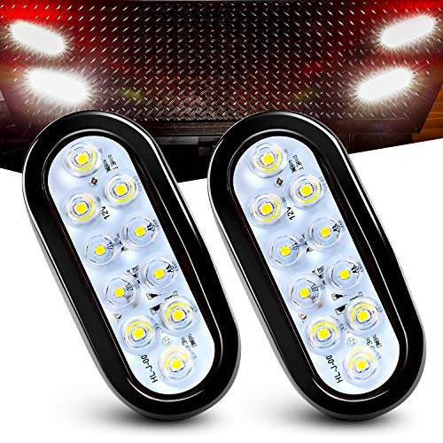 Nilight 6 Inch Oval White Trailer Tail Lights 2PCS 10 LED w/Flush Mount Grommets Plugs IP67 Waterproof Reverse/Back Up Lamp for Truck RV Camper Boat Jeep, White, White Lights 2Pcs