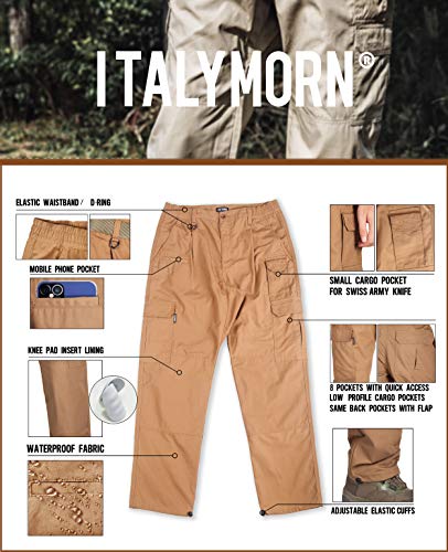 • ITALYMORN Men's Tactical Cargo Pants Lightweight Survivor Outdoor Pants Waterproof 8 Pockets(28W x 30L,Black 19)