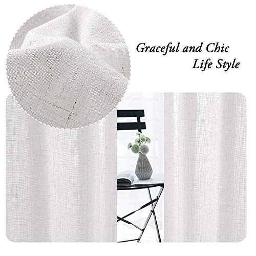 • Rich Linen Textured Curtains Privacy Soft Flax Linen Extra Long Window Curtains Light Filtering Window Treatment Set for Living and Dining, Rod Pocket (1 Pair, 52x108 Inch, White)