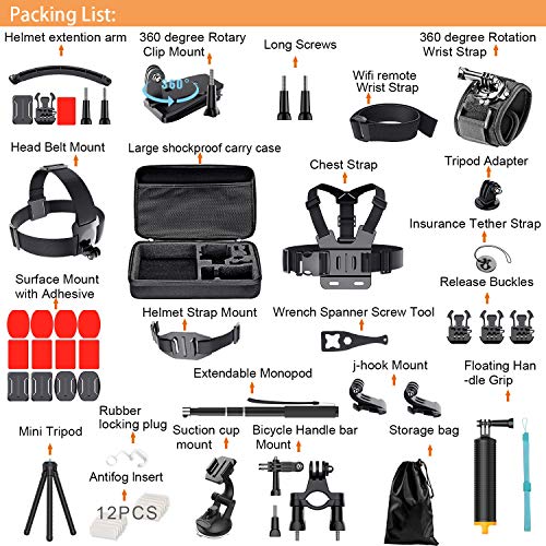 • 61-In-1 Action Camera Accessories Kit for GoPro Hero 7 6 5 4 3+ Hero Session 5 Black Accessory Bunble Set for AKASO APEMAN DBPOWER Xiaomi Yi SJ6000 Campark Rollei Lightdow Sony Sports DV Action Camera