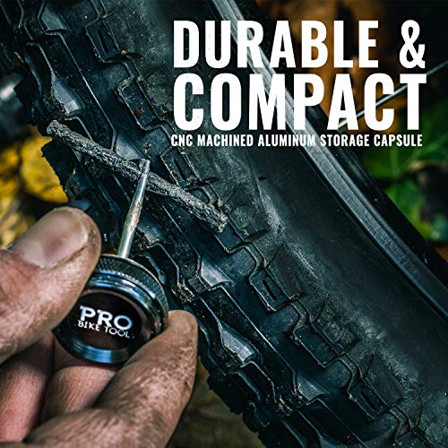 • PRO BIKE TOOL Tubeless Bike Tyre Repair Kit – for MTB and Road Bicycle Tyres – Fix a Puncture or Flat, Fast – Tackle Set Includes Storage Canister, Plugger Tool and Plugs - 5 Bacon and 5 Black Strips