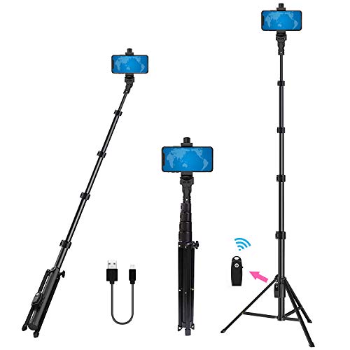 • Selfie Stick Tripod 54 Inch Wireless Remote Portable Extendable Phone Camera Selfie Stick with Tripod Stand Rechargeable for iPhone 11 pro Max Xs Xr Plus 6 7 8/Samsung Galaxy/Xiaomi/Android Phones