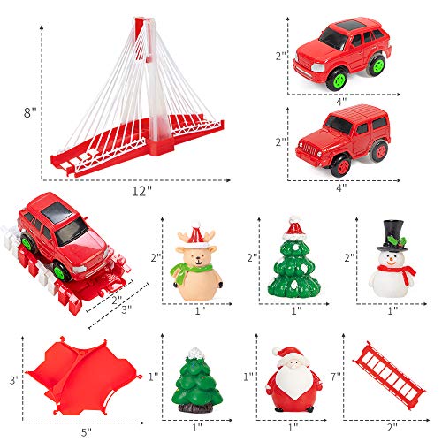 Lucky Doug Christmas Race Car Track Toys, 2 Cars and 1 Bridge with Lights Sounds, 192 PCS Christmas Birthdays Toys for Kids, Toddler Age 3+