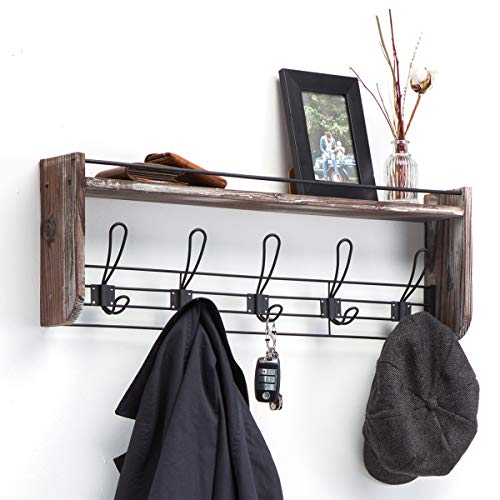 • J JACKCUBE DESIGN Rustic Wall Mounted Coat Rack 5 Hooks Wood Floating Shelf Entryway Hanger for Hat, Small Bag, Key, Kids Backpack Leash Decorative Organizer -MK508A