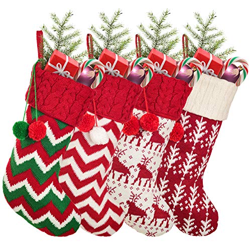 Woooow 4 Christmas Stockings,Christmas Holiday Stockings with Christmas Snowman Santa Reindeer Bear Christmas Stockings Set Gift and Treat Bag for Favors and Decorating Ornaments, 4 Pack