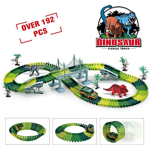 • TAZHAI Dinosaur Toys 192Pcs Race Car Flexible Track, Create A Road Flexible Dinosaur Track Across The Dinosaur World, 2 Dinosaurs, 1 Car, Perfect Birthday Toys for 3 4 5 6 Year Old Boys & Girls Kids