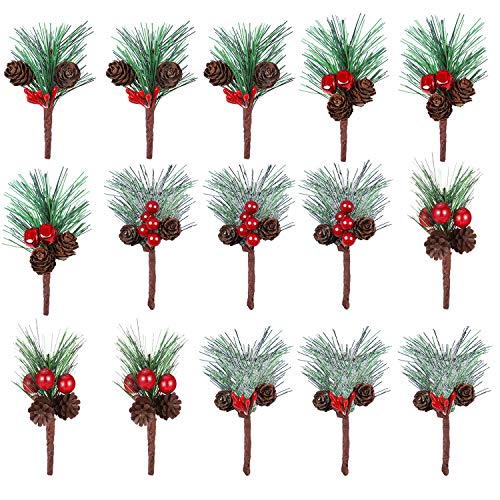 • 15 Pack Artificial Pine Picks Small Artificial Pine Tree for Christmas Flower Arrangements Wreaths and Holiday Decorations