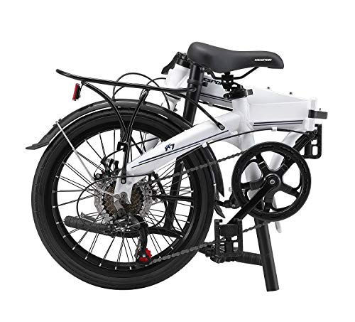 • KESPOR K7 Folding Bike for Adults, Women, Men, Rear Carry Rack, Front and Rear Fenders, Shimano 7 Speed Aluminum Easy Folding City Bicycle 20-inch Wheels, Disc Brake (White)