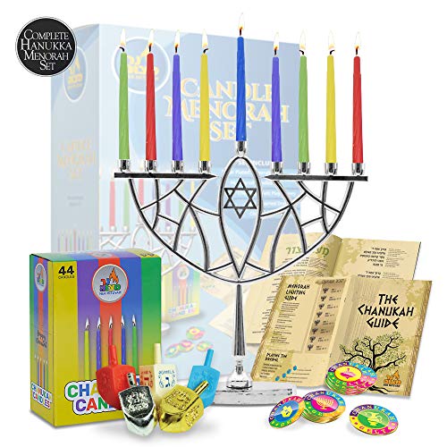 • Ner Mitzvah Menorahs for Chanukah - Complete Set Hanukkah Menorah - Menorah, Hanukkah Candles, Dreidels, Play Coins, Guide