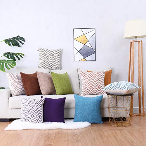 HPUK Decorative Throw Pillow Covers Set of 4 Geometric Design Linen Cushion Cover for Couch Sofa Living Room, 18"x18" inches, Golden Brown, 18x18 Inch Pillow Covers
