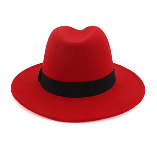 • Eric Carl Trend Red Black Patchwork Wool Felt Jazz Fedora Hat Casual Men Women Leather Band Wide Brim Felt Hat,Plus Size