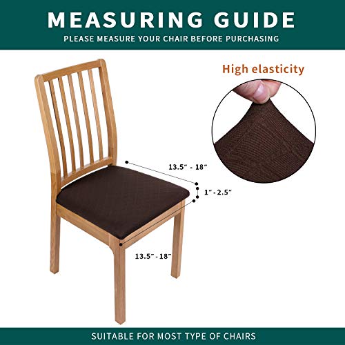 Smiry Stretch Jacquard Dining Chair Seat Covers, Removable Washable Anti-Dust Upholstered Chair Seat Cover for Dining Room, Kitchen, Office (Set of 4, Coffee)