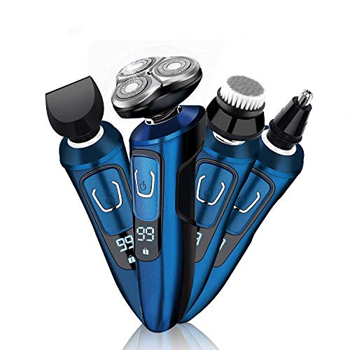 • Electric Razor for Men,AWECOT 4 in 1 Men's Electric Shaver Kit with Nose Hair Trimmer,Rotary Shaver,Beard Trimmer,and Facial Cleaning Brush,USB Quick Charging,Wet & Dry Use for Beard Shaving