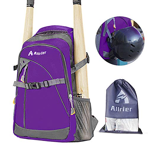 Unknown Baseball Backpack Bag- Baseball Bag with Fence Hook, Ball Softball Equipment Gear Holds 2 Bat Helmet Batting Glove Cleats Water Bottles and More for Kids Youth and Adults - Purple