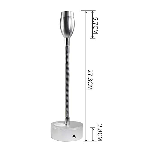 Shni LED Flexible Bedside Light, 12V 360 Degree Rotation Flexible Gooseneck Bedroom Wall Lamp, Eye Caring Reading Light Interior Light for Automotive RV Trailer Motorhome, Silver, a#