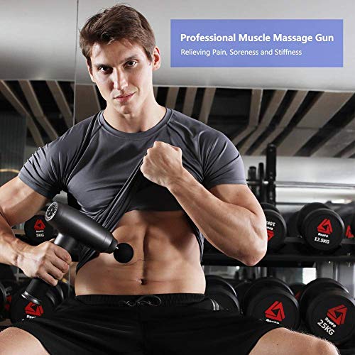 • Massage Gun, Deep Tissue Percussion Muscle Massage Gun for Therapy and Relaxation, Powerful Quiet Cordless Handheld Muscle Massager Gun for Athletes Relieving Pain, Soreness and Stiffness(Black)