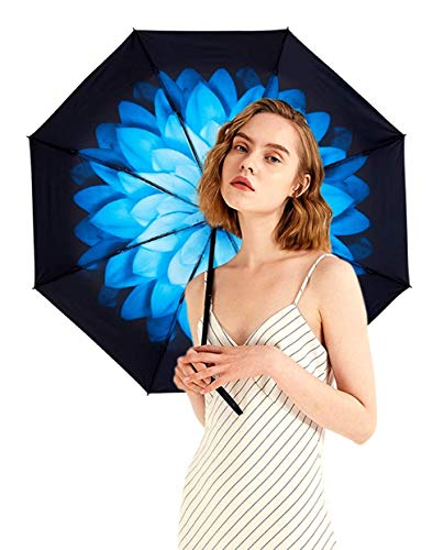 • Fidus Upgraded 8 Ribs Mini Portable Sun&Rain Lightweight Windproof Umbrella - Compact Parasol Outdoor Travel Umbrella for Men Women Kids-E005-Light Blue Daisy