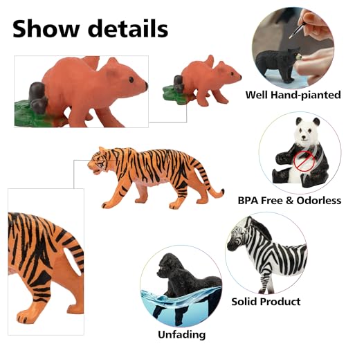 • Toymany 14PCS 1-2" Tiny Jungle Animal Figures Toy, Realistic Mini Jungle Zoo Animal Figurines Cake Topper Toy Set, Easter Egg Christmas Birthday Gift Party Favor School Project for Kids Toddlers