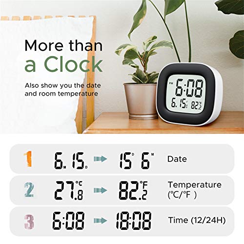 Mpow Travel Alarm Clock, Digital Clock with Snooze, Backlit, Temperature, Date, Simple Basic Operation, Bedside Digital Clock Battery Powered for Bedroom, 12/24H