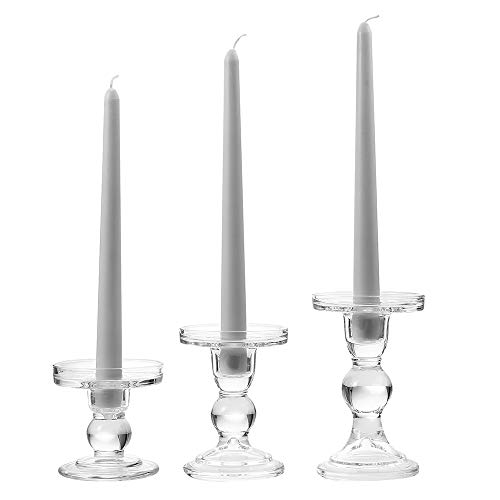 OYATON Glass Candle Holders for 3 inches Pillar Candle or 7/8 inch Taper Candle, Candlestick Holder Set of 3 for Wedding or Home Decoration(Exclude Candles) …, H 3.5",4.5",5.5"