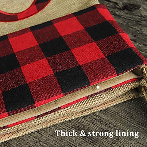 • Ivenf Christmas Stockings, 3 Pcs 19 inches Red and Black Buffalo Check Plaid Faux Burlap Joy Stockings, for Family Holiday Xmas Party Decorations Gift