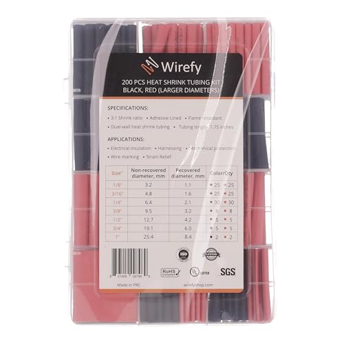 • Wirefy Heat Shrink Tubing Kit - 3:1 Ratio Adhesive Lined, 1.75" Length, Wire Shrink Wrap Tubing - Automotive Industrial Heat-Shrink Tubing - Black, Red - 200 PCS