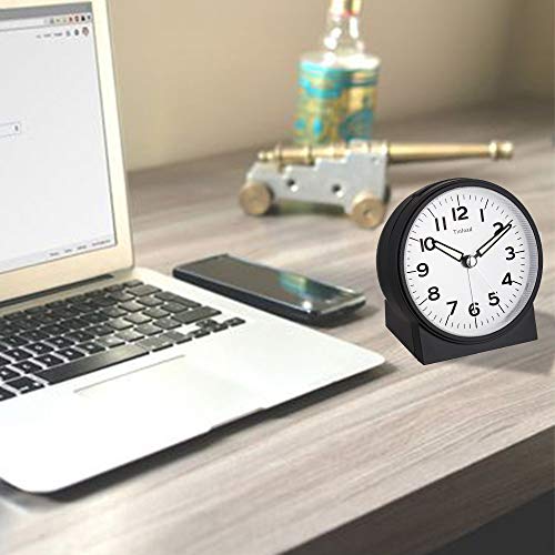 Tinload 4" Silent Analog Alarm Clock Non Ticking, Gentle Wake, Beep Sounds, Increasing Volume, Battery Operated Snooze and Light Functions, Black, Black/C