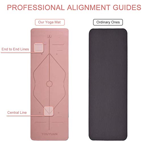 YOUYUAN Yoga Mat, 6mm Non-Slip Yoga Mats for Women, Exercise Mat with Carrying Strap and Bag, TPE Yoga Mat for Men and Women Gym Mats Eco Friendly Yoga Mat for Home, Pink