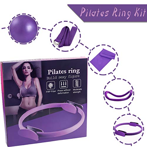 • 5 Pcs Pilates Ring Set 14" Yoga Fitness Magic Circle Pilates Equipment for Home Workouts Include Ball,Stretching Strap,Extension strap And Training Ring for Fitness kit