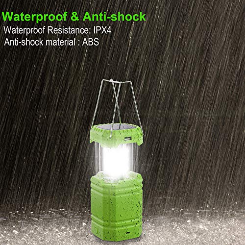 HOLABABY LED Camping Solar Lantern,Hand Crank Flashlight lamp with 3000mAh Rechargeable Battery,Power Bank,USB Charger,Solar/Hand Crank/USB Cable(5V/2A) Powered,Emergency Survival Kits for Outdoor & Indoor, Green ( Support 5V/2A Adapter), 4.96*3.19*3.11 inch