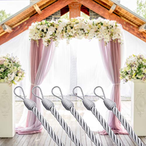 • Blulu 4 Pieces Curtain Tiebacks Ropes Belt Curtain Ties Handmade Curtain Holdbacks with 4 Metal Screw Hooks for Window Curtain Accessories (Silver)