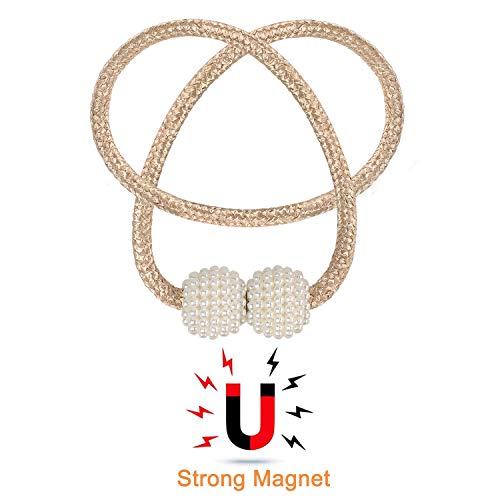 • Magnetic Curtain Holdbacks Drapery Tiebacks, Convenient Tie Backs Holdback for Home Office, Pearl Decorative Weave Rope Holdback Holder for Window D¨¦cor,Drape Tie Backs for Thin Sheer Curtains-4 Pack