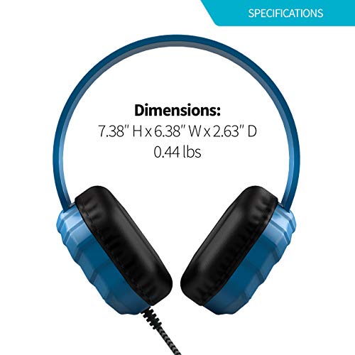 • GumDrop Droptech B1 Over-Ear Headphones with Chew-Proof Cord, 3.5mm Audio Jack (75dB/110dB) for Classroom, Students, Kids - Rugged, Plug & Play, No Microphone (Blue)