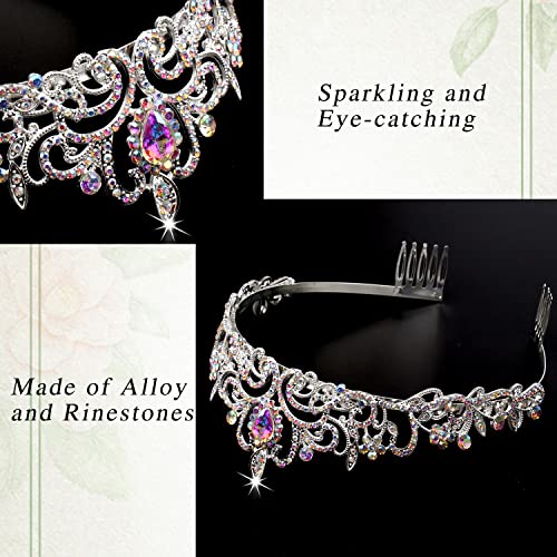 KICOSY Tiaras & Crowns - Crystal AB Rhinestone Princess Tiara for Women & Girls - Birthday Crown, A Sliver-AB, 1 Count (Pack of 1)
