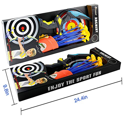 • Conthfut Bow and Arrow for Kids with LED Flash Lights - Archery Bow with 9 Suction Cups Arrows, Target, and Quiver, Practice Outdoor Toys for Children Above 3-12 Years Old (Blue)