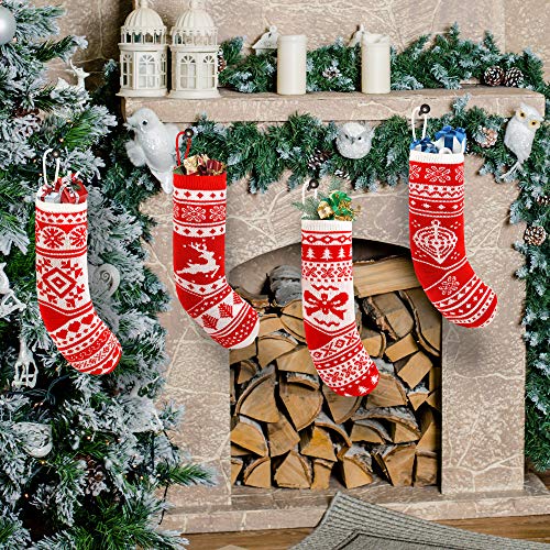 • JOYIN 18” Christmas Stockings 4 Pcs, Large Size Rustic Cable Knit Xmas Stocking in Red, for Family Holiday Season Decorations