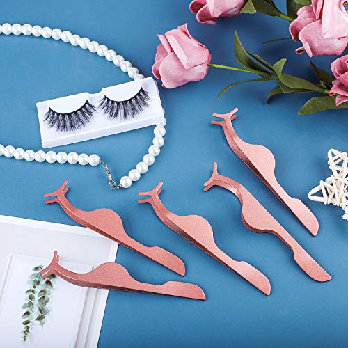 • Elcoho 30 Pieces False Eyelashes Applicator Tool Stainless Steel Eyelash Extension Tweezers Remover Clip Tweezers Nipper with Plastic Round Box(Rose Gold)