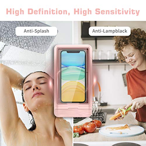 • Wall Mount Phone Holder, Fansteck Wall Phone Holder Mount with Reusable Nano Adhesive Strip, for Bathroom,Shower,Kitchen,Make up and More, Compatible with Mobile Phones Under 6.9 inches (Pink)