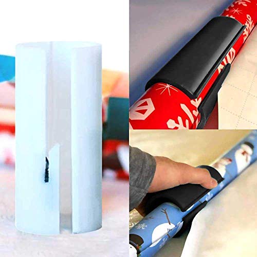 • 4Pack Christmas Wrapping Paper Cutter Tool Tube, Kraft Craft Paper Roll Sliding Line Cut Trimmer for Xmas Gift,Storage Holder & Dispenser W/Embedded Blade,Round Lip to Safer & Easier Cut