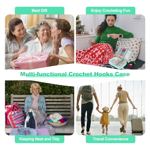 • Katech Crochet Hook Case Empty Zipper Bags Organizer Portable Travel Crochet Storage Bag with Web Pocket and Crochet Holder Slots for Carrying Various Crochets and Knitting Accessories (Light Blue)