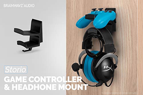 BRAINWAVZ The STORIO - Gamepad Controller & Headphone Hanger Holder Stand - Designed for XBOX ONE, PS4, PS3, PS5, Dualshock, Switch, PC, Steelseries, Steam & More, Black, Storio - Controller & Headphone Mount