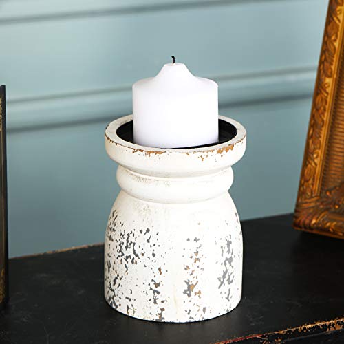 ATH Rustic Candle Holder for Pillar Candle, Vintage White Wooden Pillar Candle Holder, Farmhouse Antique Candlestick Holder for Dining Table, Coffee Table, Or Any Table Top (1Pack, 4.9" x 4.9" x 6.1"), Distressed White, 4.9" x 4.9" x 6.1"