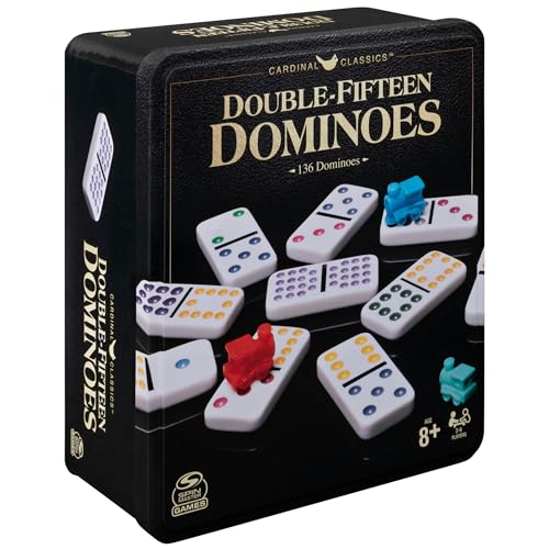 Spin Master Games Cardinal Classics Double Fifteen Dominoes Set in Storage Tin | Dominoes for Kids | Family Games | Adult Games | Dominoes Set for Adults & Kids Ages 8+, Double Line 15