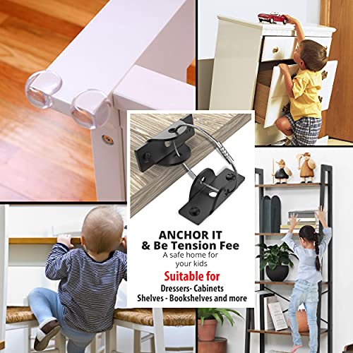 BARKAH Furniture Anchors (Pack of 6), Anti Tip Furniture Straps Kit for Baby Proofing, Heavy-Duty Furniture Wall Anchor for Baby Safety, Comes with Additional 6 Pieces of Corner Protectors for Baby