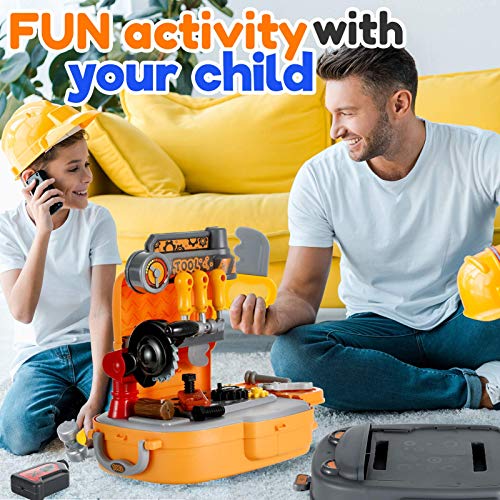 • Toy Tool Bench, Backpack 2 in1 Set for Boys,Toddler Workbench Including Rotatable Simulated Chainsaw, Detachable Childrens Tool Box and Easy to Store, Kids Tool Set for Boys Age 2 3 Year Old 【31Pcs】