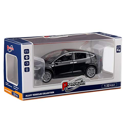 • Diecast Toy Car Model X,Zinc Alloy Casting Pull Back Vehicles,1:32 Scale for 4 to 12 Years Old Toddlers Kids Toy Gift - with Lights and Music (Black)